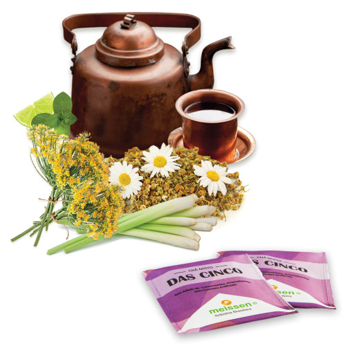 Ingredientes: Capim-cidreira / Cymbopogon citratus Stapf, folhas; Camomila / Matricaria recutita L. e Chamomilla recutita (L.) Rauscher, capítulos florais; Erva-doce-nacional / Foeniculum vulgare Mill, frutos; Limão / Citrus limmonia Osbeck ou Citrus limonium Risso, casca dos frutos; Hortelã / Mentha piperita L., folhas e ramos.