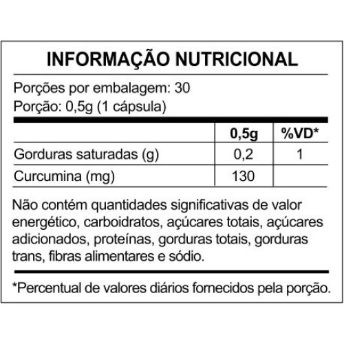 rizoma de Cúrcuma longa e cápsula vegetal (hypromelose,