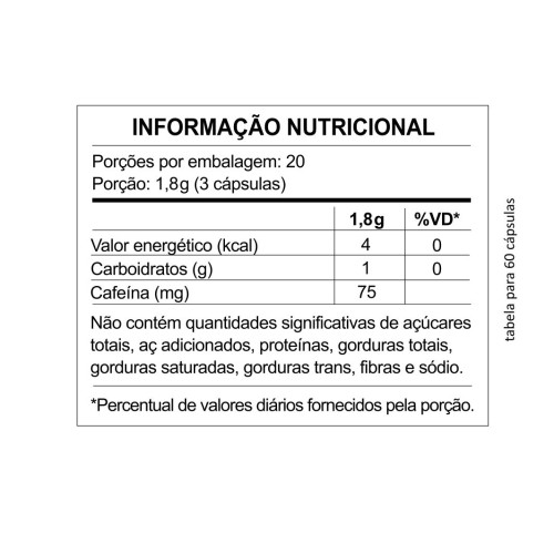 Ingredientes: Guaraná (Paullinia cupana) em pó e cápsula (gelatina e água purificada).