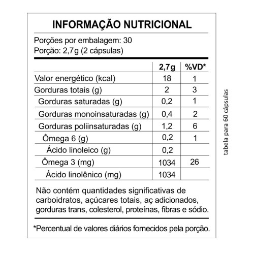 Ingredientes: Óleo de linhaça (Linum usitatissimun L) e cápsula
