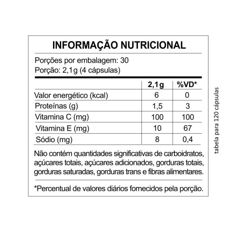 Modo de usar: Ingerir 4 cápsulas ao dia com água, divididas no almoço e jantar.