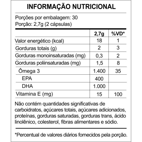 Ingredientes: Óleo de peixe, vitamina E (acetato DL alfa tocoferol)
